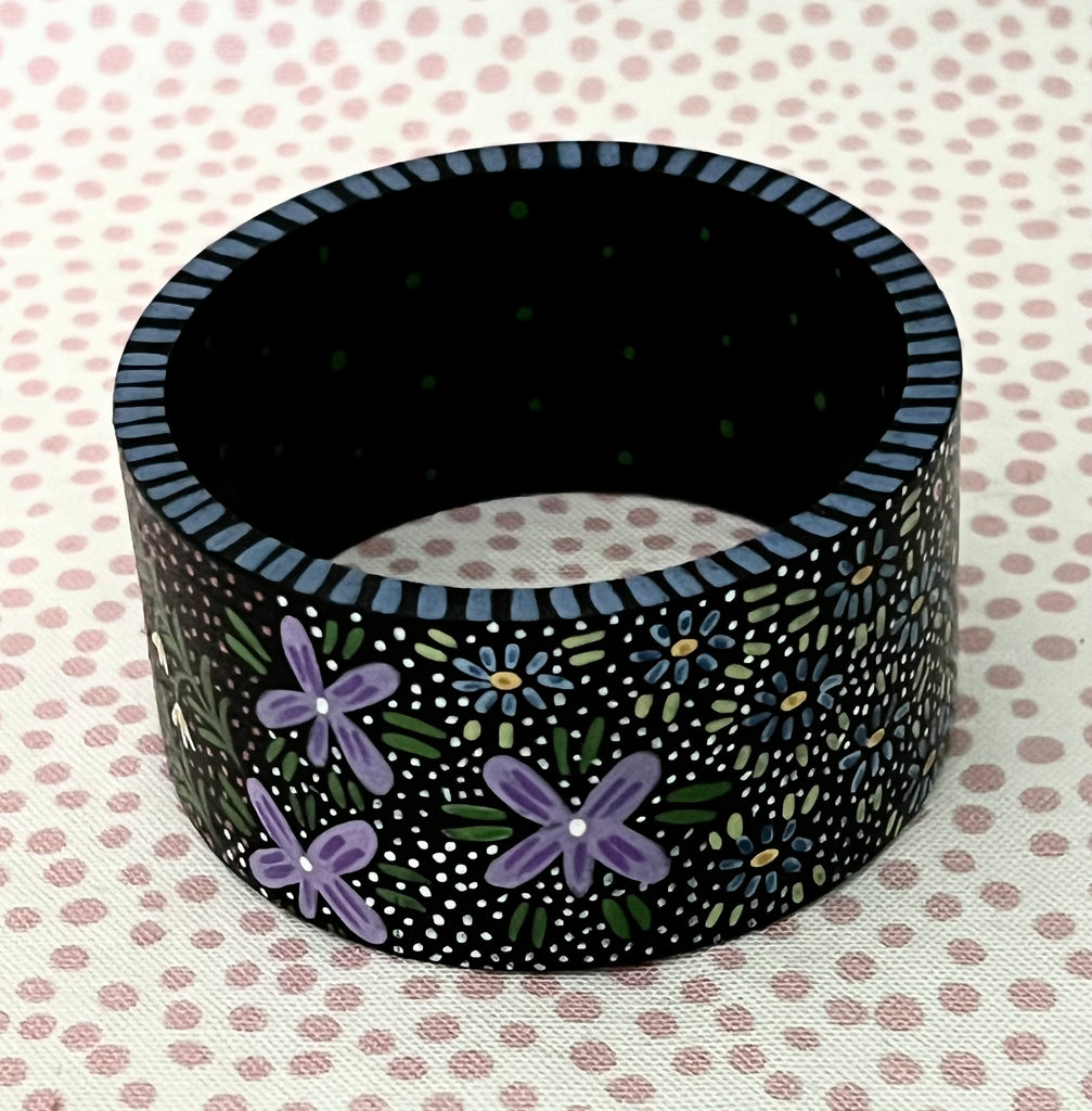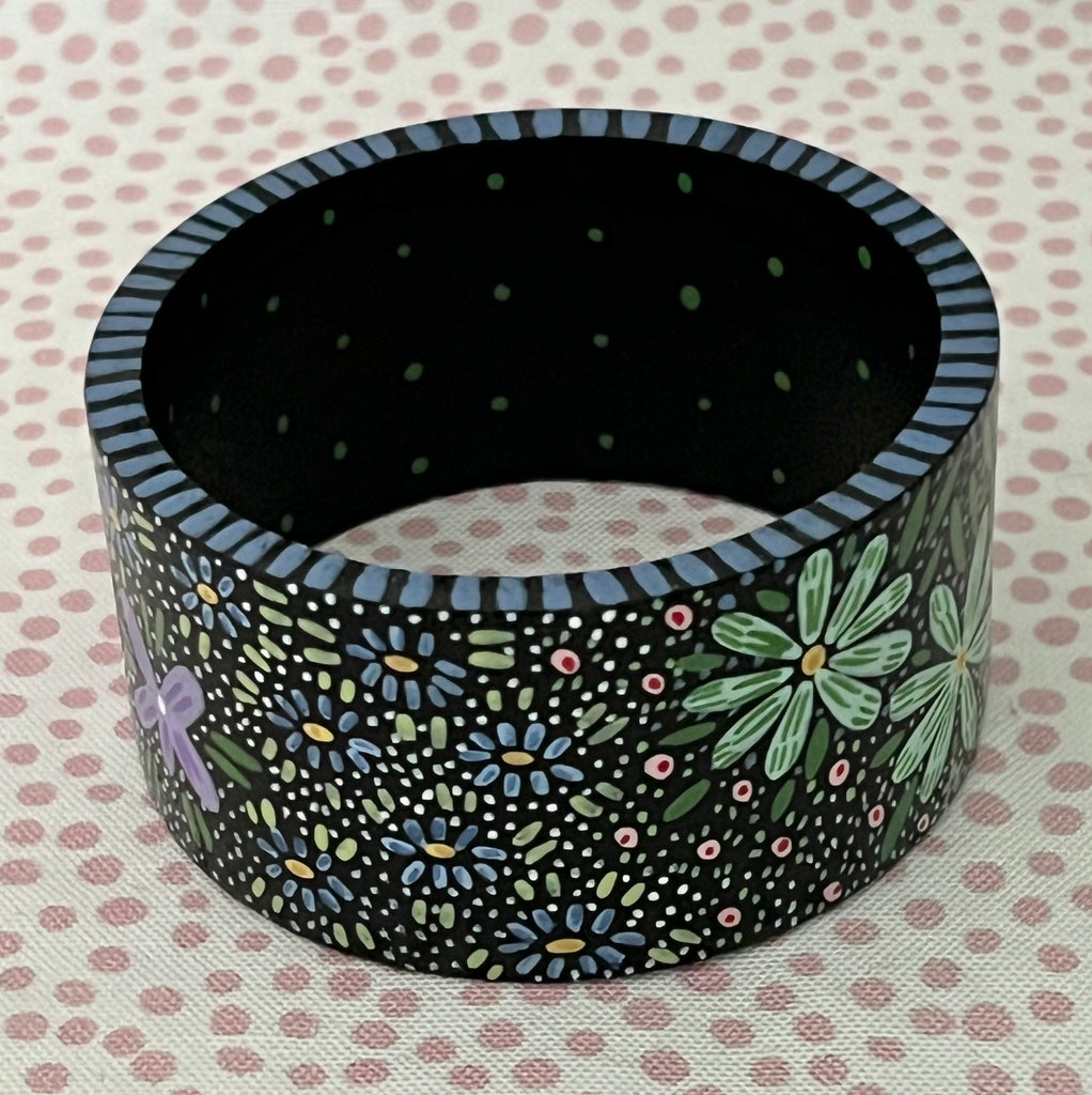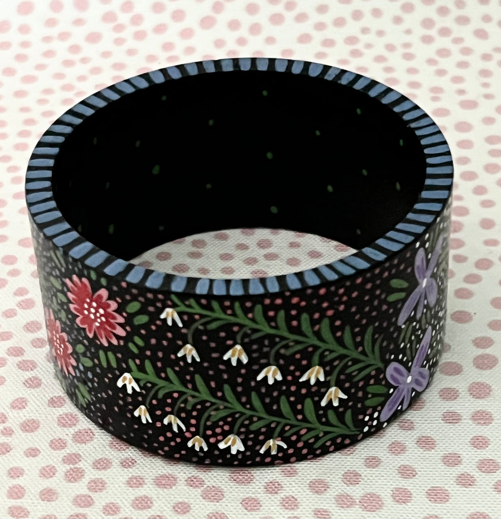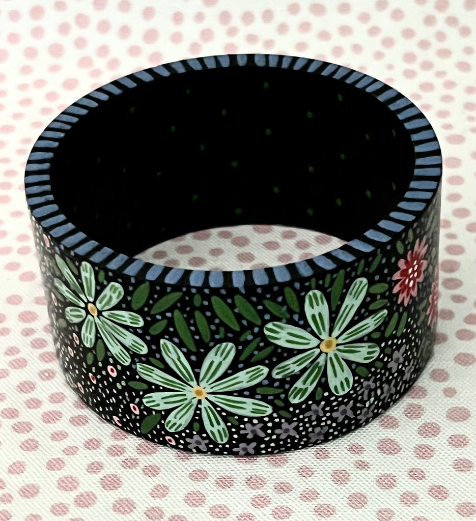 These are handpainted with acrylic and gouache paints and finished with an oil-based varnish. I have added all of my favorite dots, flowers, and leaves to create a jungle of loveliness just for you!