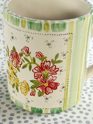 Pottery * 12 oz Mug * Circle Flowers * Turquoise and Kiwi Stripes
