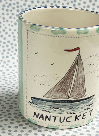 Nantucket * 12 oz Mug * Sailboat With Turquoise Stripes