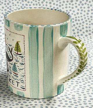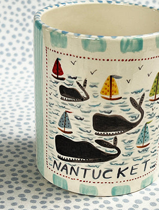 Nantucket * 12 oz Mug * Whales With Turquoise Stripes