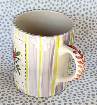 Pottery * 12 oz Mug * Rose Bunch With Multi Stripes