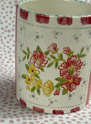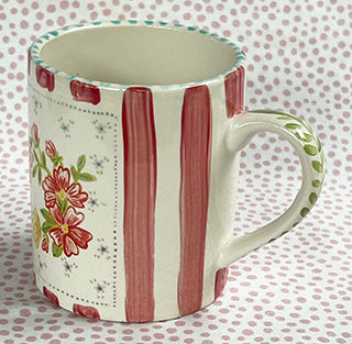 Pottery * 12 oz Mug * Circle Flowers With Red Stripes