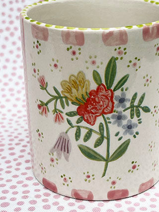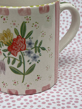 Pottery * 12 Oz Mug * Rose Bunch and Pink Stripes