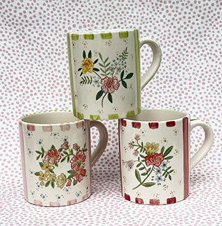 Pottery * 12 oz mug * Circle Flowers and Pink Stripes