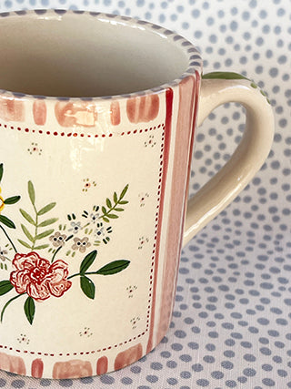 You will love this special mug! It measures 3.75 inches high x 3.25 inches in diameter and holds 12 oz of hot chocolate or your favorite brew.