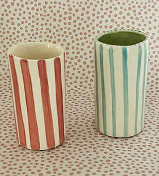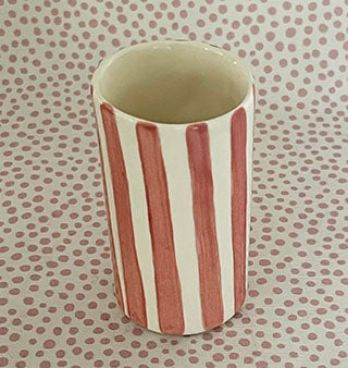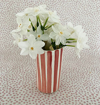 I handmade this one-of-a-kind earthenware vase and handpainted it with a sweet floral design. It measures about 3.5 inches high x 2 inches wide at the top.